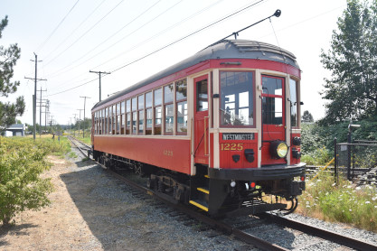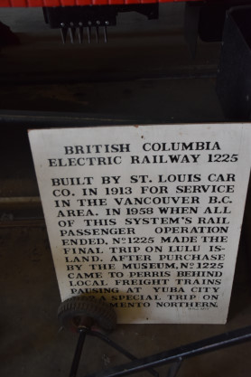 BC Electric Railway Interurban 1225 was built by the St. Louis Car Company in 1913 and served the BCER in Vancouver, Steveston and Burnaby until the end of operations, making the last run on the line on February 28, 1958. In early 1950’s, as the BCER was being wound down, many of the cars were decommissioned. Most ended up being burnt at the rail yard under the Burrard Street bridge. Some were purchased and moved to museums south of the border. 1225 was sold to the Orange Empire Railway Museum in Perris, California and travelled south to California on its own wheels in a freight consist, making some operating appearances en route.