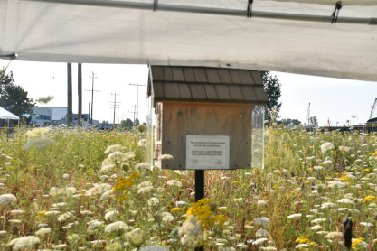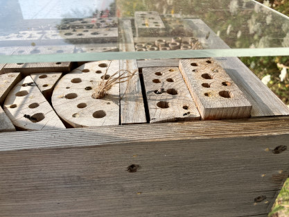 The Bee Hotel, the one and only such structure, built by volunteer and former director Harry Taylor, to complement the bee hives in the wildflower meadow, a partnership with the Honeybee Centre.