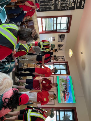 Volunteers gathering for the morning safety briefing. We went into the station.