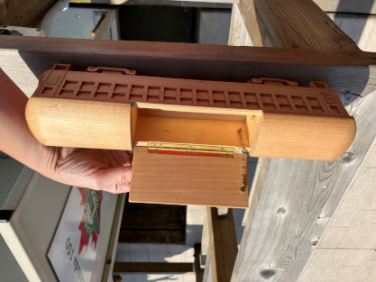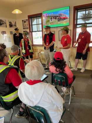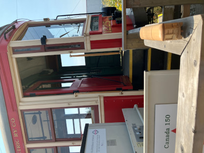 At the Volunteer Appreciation Dinner in 2018, Harry Taylor (also responsible for the bee hotel) introduced his newest masterpiece - a one-of-a-kind ticket collection box representative of an interurban car. This was received with much admiration and awe and since 2019, has been in constant use and replaced a small plastic container. The open compartment is for the ticket stubs which are collected when passengers board.
