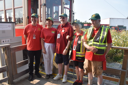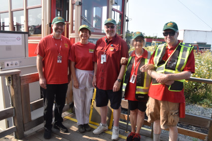 Five of the seven Fraser Valley Heritage Railway station masters. From left to right: Andrew Pickell, Elizabeth Guenzler, David Hobson, Barb Ducharme and Alan Cumberlidge. Missing are Kyra Dutton-Piskorik and Shane Suter.