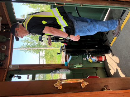 Motorman Dave Baker, a volunteer from Bellingham, Washington.