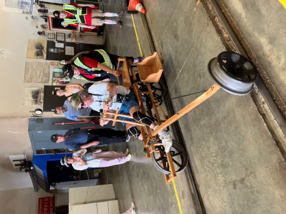 A lady from Australia was in our group and it was her turn to ride the velocipede.