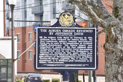 The Auburn Guards Reviewed by Jefferson Davis historical plaque.