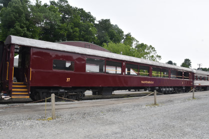 Great Smoky Mountains open air car 37 "Nantahala", ex. Maryland Midland 83, exx. Penn Central 2182, exxx. Erie Lackawanna 1311, nee Delaware, Lackawanna & Western 311, built by Pullman in 1949.