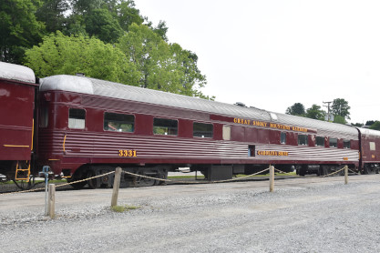 Great Smoky Mountains observation-lounge 3331 "Carolina Shine", ex. American Zephyr 3331, exx. Amtrak 3331, exxx. Seaboard Coast Line 5831, nee Atlantic Coast Line 252, built by Budd Company in 1941.
