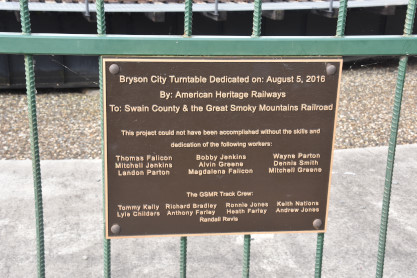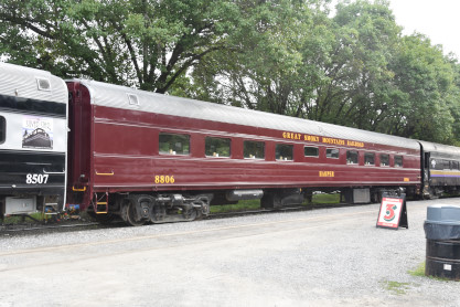 Great Smoky Mountains diner 8806 "Harper", ex. Amtrak 8806 1976, exx. Penn Central 4622, exxx. Pennsylvania Railroad bar-lounge 4622, built by Budd Company in 1949. It was dedicated on September 17, 2010 and named for the family who owns the railroad.