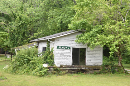 The Southern Railroad Almond station with the name board.