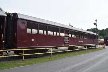 Great Smoky Mountains coach 3081 "Blue Ridge", ex. Indiana Transportation Museum 3081, exx. New Jersey Transit 3081, exxx. Central of New Jersey 3081, nee Santa Fe 52-seat coach 3081 built by Budd Company in 1937.