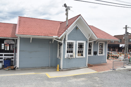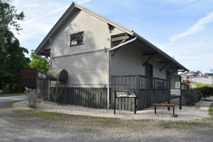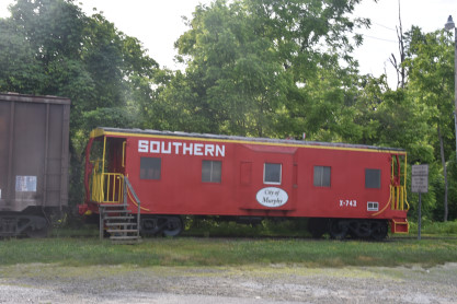 Southern Murphy station built circa 1887, was the meeting place of the Southern (originally the Carolina Railroad) and the Louisville & Nashville Railroad (originally the Georgia Railroad). What remains is the freight area. The grand station was torn down shortly after the railroad pulled up the tracks in 1987. Both railroads met at the river and were unable to cross it due to a group of Murphy businessmen and New York investors who chartered a railroad called the Hiawassee Railroad Company and set up a blockade to keep the L&N and Southern Railroads from meeting. Passengers and freight had to be ferried across the river to the depot. No railroad was interested in the Hiawassee scheme or buying its right-of-way, and it eventually died. The Georgia Railroad went to court to condemn the property and finally put its tracks across the river to the present depot site 12 years later. Murphy now boasts the smallest railroad in the country with a short spur of tracks, a boxcar and a caboose. The last train to leave out of Murphy was a trip to Andrews over Independence Day weekend in 1992.