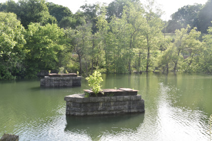 The bridge abutments of the Murphy Branch in the Hiawasse River.
