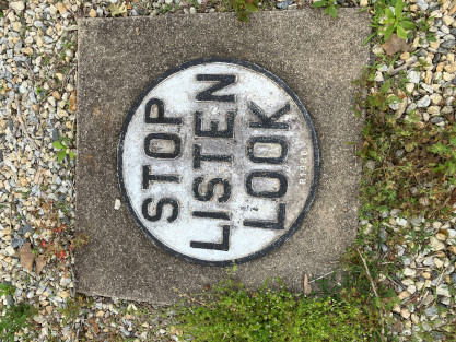 Stop, Look and Listen crossing sign.