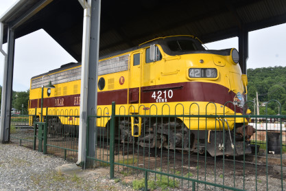 Our VisitGreat Smoky Mountains F9A 4210, ex. Indiana Box Corporation 4210, exx. LTV Mining 4210, exxx. Erie Mning 4210, nee Erie Mining 100 built by Electro-Motive Division in 1956.