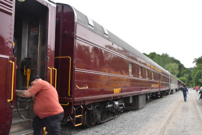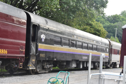 Great Smoky Mountains kitchen-dormitory 8807 "Conductor's Cafe", ex. Amtrak 8807, exx. Penn Central 4623, nee Pennsylvania Railroad 4623, built by Budd Company in 1949.