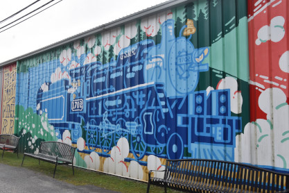 The mural on the side of the Smoky Mountains Train Museum.