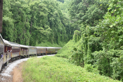 With the increasing popularity of the automobile, passenger traffic on the Murphy Branch, then owned by the sprawling Southern Railway System, began to decline. Southern discontinued all passenger traffic on the Murphy Branch on July 16th, 1948, ending 64 years of service that had opened Western North Carolina to the outside world. When freight traffic dropped off by 1985, Norfolk Southern closed the Andrews to Murphy leg of the Murphy Branch and the State of North Carolina purchased the Dillsboro to Murphy tracks to keep them from being destroyed.