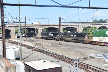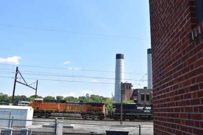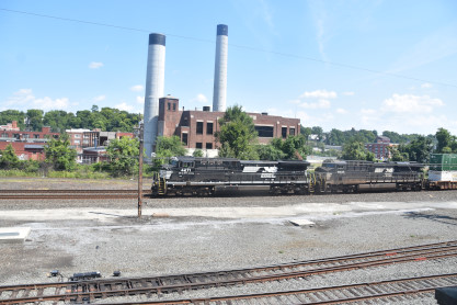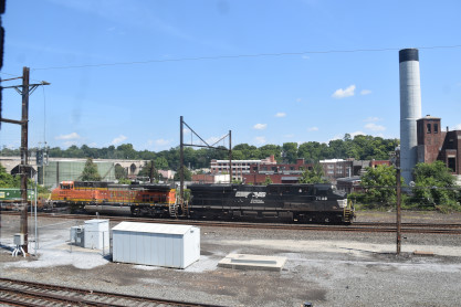 Norfolk Southern 7588 and BNSF 5621 leave Harrisburg for good.