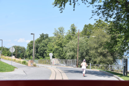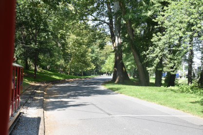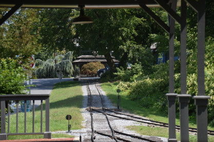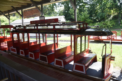 Our RideThe three of us walked across the Walnut Bridge to City Island where looking to the right, you see the tracks and follow them west to the station, where we waited to buy our tickets. Today we would be riding their trolley and a trailer.