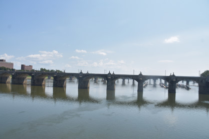 The Market Street bridge, a stone arch bridge that spans the Susquehanna River between Harrisburg and Wormleysburg. The current structure is the third bridge built at its current location and is the second oldest remaining bridge in the city. It carries BicyclePA Route J across the river. The bridge was listed on the National Register of Historic Places on June 22, 1988 and was documented by the Historic American Engineering Record in 1997.