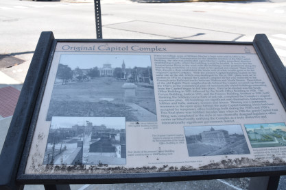 The original Capitol Complex history board, as seen during our walk to Harris Tower.