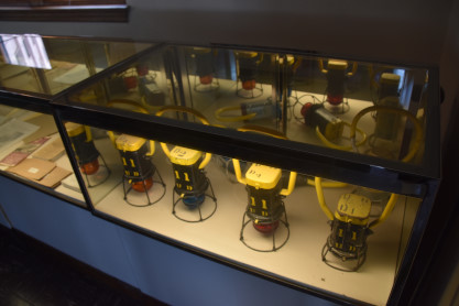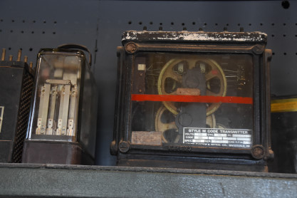 A position light signal without its covering. We all went upstairs to see the second floor.