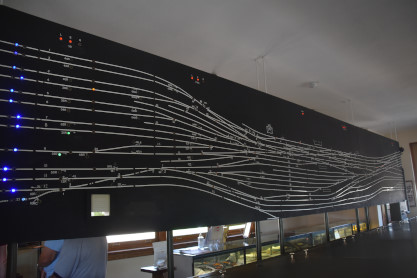 Today, a complex computer program, designed specifically for use at Harris Tower, teaches visitors about the operations of the tower in its heyday. The program is connected to the original levers, allowing visitors to control virtual trains through a simulation of the 1940's track pattern based on period-correct Pennsylvania Railroad timetables and train schedules.
