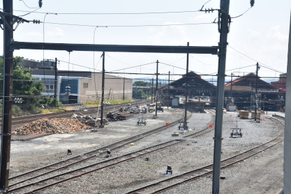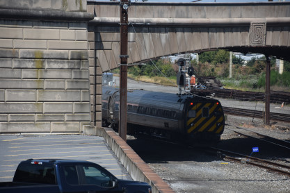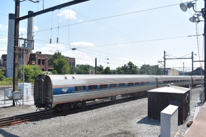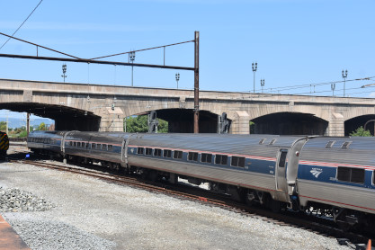 A return to the present with a view from the Tower of a Keystone Amfleet train waiting for the call of duty.