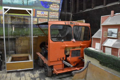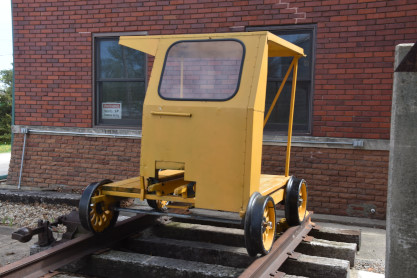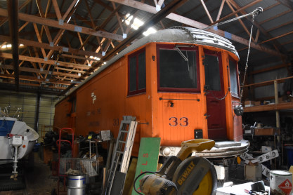 Iowa Traction box motor 33, ex. Iowa Trolley Park 2015 to present, exx. Iowa Traction 33 1987-2015, exxx. Iowa Terminal 33, 1963-1987, nee. Chicago North Shore & Milwaukee 1923-1963, built by Cincinnati Car Company in 1923.