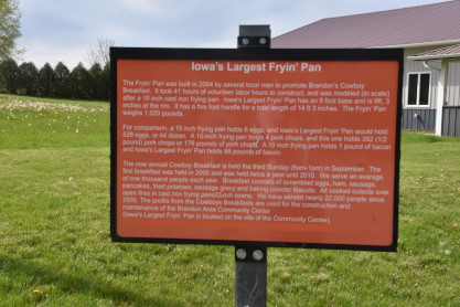During our trip preparation, Elizabeth was zooming in on Google Maps and found the marker for this, the State's Largest Frying Pan, in Brandon.