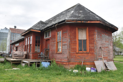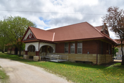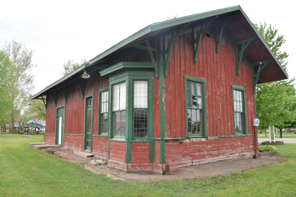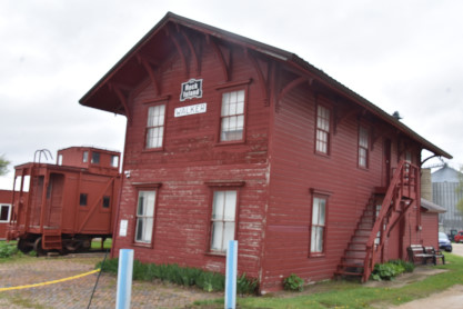 Chicago Great Western station relocated from Fredricksburg, year of construction unknown.