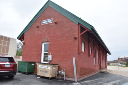 Chicago, Rock Island and Pacific Waverly station constructed in the Spanish Mission style in 1909-10. Currently known as 4 Queens Dairy Cream (and over time, also as assorted businesses such as Laundry Depot, Quality Cleaners and Elsamiller Electric), it was built on land originally platted by William Sturdevant and later sold to the railroad by Edward Knott in 1904. It was later attached at one point (after 1959) to B & B Co-Op Oil on the north end. That addition, constructed in 1938 as a gas station, was torn down after a fire in 2017. The remaining original depot building was then purchased and restored by Mark Nagle, owner of 4 Queens.