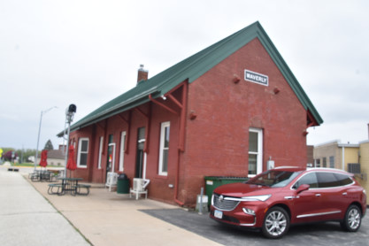 5/4/2024 The next morning we arose and had breakfast at the hotel then returned to our room to our Internet duties. We started with me driving and we went to Usher Village, but alas the station had been washed away by the floods of 2009. Next we went to Amana, but could not find the depot so moved on to Marengo, but the depot was on the grounds of the locked Pioneer Hertiage Museum and not photographable fro the road. We then made our way to Belle Plaine and we found more than expected.