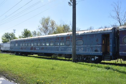 Chicago, Milwaukee, St. Paul and Pacific 8-6-4 sleeper "Jefferson River" built by Pullman-Standard in 1948 for the Pioneer Limited. This car occasionally saw service on the Olympian Hiawatha during high travel seasons in the early 1950's. It was sold to Henry Castro in 1971, then to Don Barzak around 1980, who operated as part of the Milwaukee Great Northern Bar. In 2004, it was sold to the Kansas City Union Station Museum. After years in storage, the car was\ privately acquired by APTHM members in 2017 and moved to Charles City, IA. This car is unique because it is the sole surviving example of this series which had the duplex roomettes in the center of the car.
