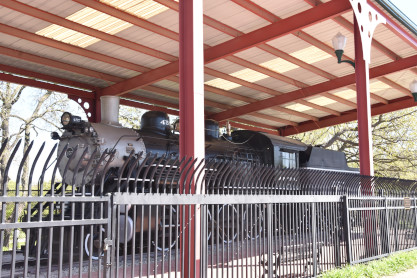American Crystal Sugar Company 457 1959, nee Minneapolis & St Louis 2-8-0 457 built by American Locomotive Company in 1912. It saw service in Minnesota and Iowa and hauled troop trains during World War II but, by late 1950, the railroad had dieselised and the steam engine was sold to the American Crystal Sugar Company in Mason City, Minnesota, where it was used to switch carloads of sugar beets during the annual beet harvest season. Exactly when 457 was last used is unknown but in September 1959, it was moved to its current location in East Park. The Mason City Noon Rotary Club funded relocation resulting in the locomotive’s nickname of "Rotary Cannonball".