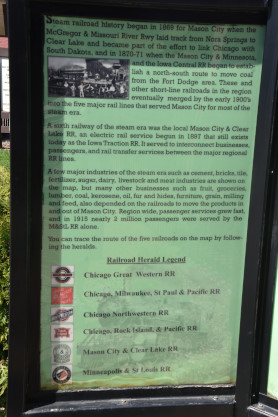 Railroad Development in Mason City Steam Era 1869-1955 display board.
