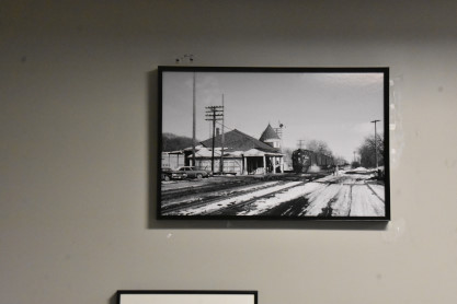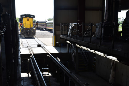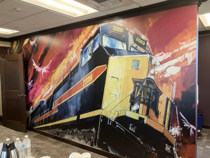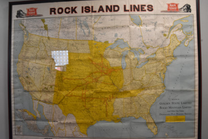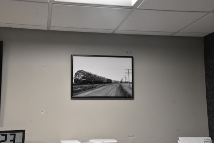 An example of the Rock Island Railroad pictures in the office. Once this portion of the tour was finished, some took the elevator and others the stairs to exit the building and board the bus to the Dennis H. Miller Shop Building, which were built in 2010 was designed for the General Electric ESS44AC locomotive.