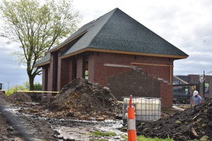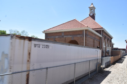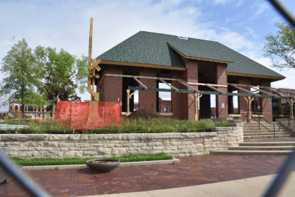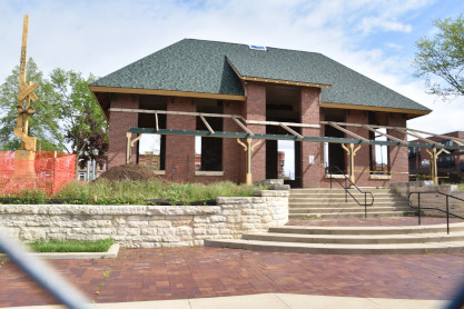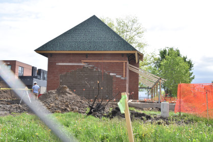 The depot's roof was moved in April, set atop hickory posts salvaged from the depot. The depot committee and volunteers cleaned 19,000 bricks from the old depot to use in the new pavilion. The project was completed by the spring