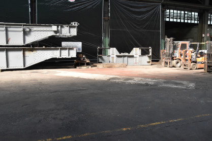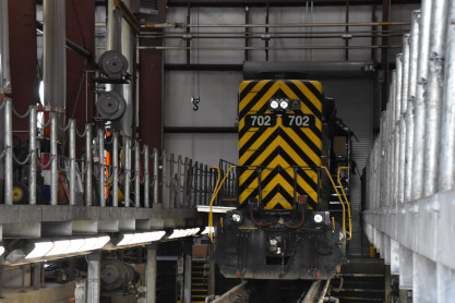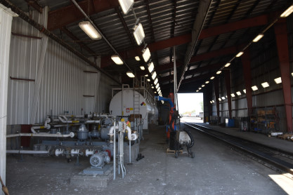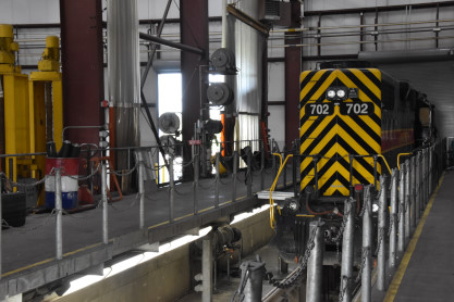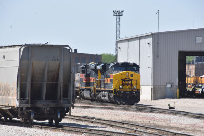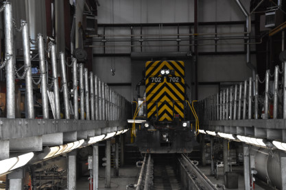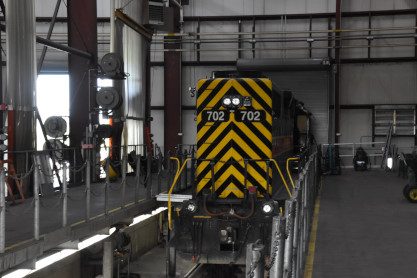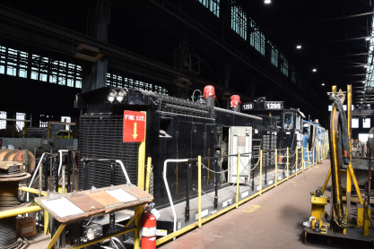 Iowa Interstate ES44AC 511 as seen from inside the shop.