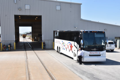 Former Amtrak baggage cars. We boarded the bus and Sandy did an excellent job of getting us to the shops; probably not a location she has ever had to drive to before.