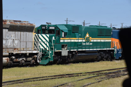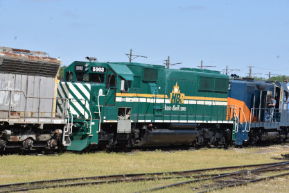 Hudson Bay Railway SD50 5003, ex. National Railway Equipment Company 5468, exx. Pennsylvania Railroad 5468, nee Conrail 6820, built by Electro-Motive Division in 1986.