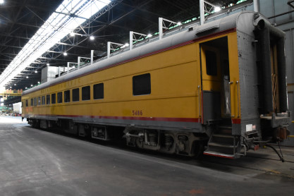 Union Pacific coach 5486 "City of Salina" built by American Car & Foundry in 1953. Once in revenue service, it ran between Kansas City, Missouri and Salina, Kansas, as the Kansas Streamliner. Later in 1936, city names where given to these trains and this new trainset was renamed the City of Salina.