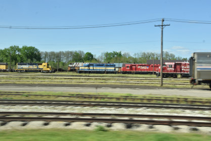 Seen in the yard as we departed were Canadian Pacific GP38-2 3092 and GP38-2 3058, both built by Electro-Motive Division in 1983.