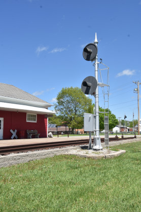 railroad history. We drove to Amana and this time, found the station. Chicago, Milwaukee, St. Paul and Pacific Amana station built in 1883. Our attempts to locate the station in Deep River were unsuccessful then I remembered a station in Eldon. Chicago Rock Island and Pacific Eldon station built in the 1870's. Chicago, Rock Island and Pacific block signals. The display train. Santa Fe GP7 2830 rebuilt into GP7u, painted as Rock Island 1275, built by Electro-Motive Division in 1952. Members of the museum recalled working with Rock Island GP7 1275, which was well liked by engineers. To honor the unit,