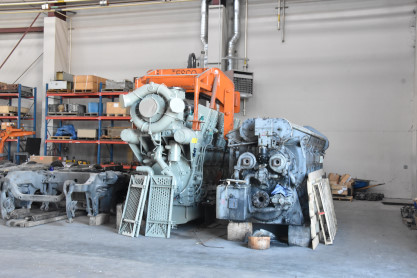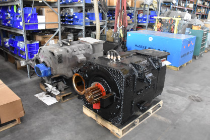 Traction motors; the one on the right from General Electric locomotive and the other from Electro-Motive Division.