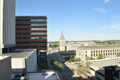 The Iowa Interstste emblem on the exterior. I then took the elevator to the seventh floor.