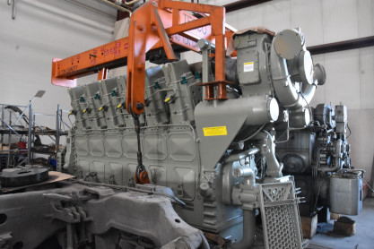 A General Electric engine on the left and an Electro-Motive Division engine on the right.