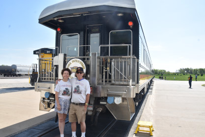 Cate Kratville-Wrinn, our friend and widow of Jim Wrinn, the long-time editor of Trains Magazine, who was married on a platform observation car and is very partial to them.