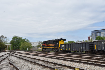 Chicago, Rock Island and Pacfic Iowa City station built in 1898. We went to the yard and stopped for a pre-planned freieght train meet. A few minutes after we had set a photo line, the train came into sight.
