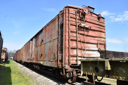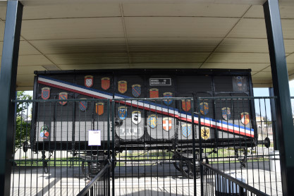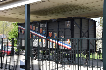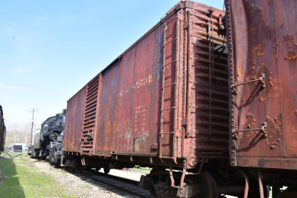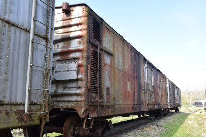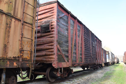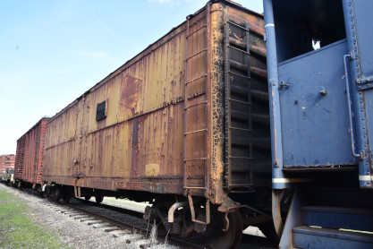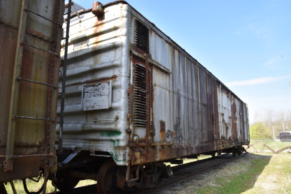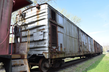 This 40-et-8 car was given to Kentucky Railway Museum in 1958. Between 1997 and 2001, the Nelson County Technical Vocational School located in Bardstown restored the car to its original state under the supervision of Mr. Chris VerDow. The Plaques that are displayed on each side of the boxcar represent the Provinces of France. The car was returned to Kentucky Railway Museum in May 2001.