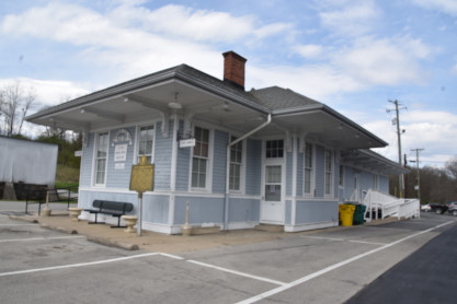 Louisville and Nashville Bloomfield station which is a one story, frame, rectangular, early 20th century building with passenger area at one end and baggage and freight section at the other end. The building has a hip roof with wide extended eaves, multi-light sash windows, upper walls of clapboard and lower walls of vertical tongue-and-groove siding with vertical and horizontal wood members defining corners, water table and fenestration. The building has a concrete foundation, two entries facing south and a handicapped access ramp to the west side. In 2015, it housed the police department and city offices. The building is a contributing property in the Bloomfield Historic District listed on the National Register of Historic Places.